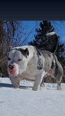 We have an XL white and blue merle and a brindle merle available they are absolutely beautiful if yo...