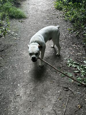 Two year old American bulldog looking for a female dog to have puppies message if interested....