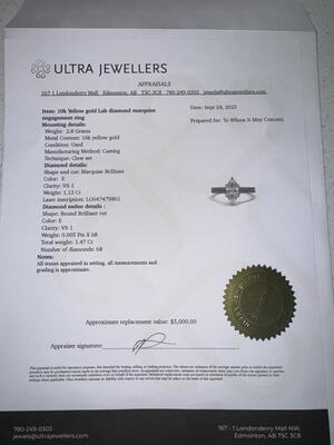 IGI certified lab grown diamond engagement ring, comes with appraisal as well ...
