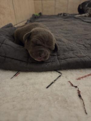 Male. Chocolate & Tan Dapple with Piebald. Very smart, doing absolutely amazing with potty training....