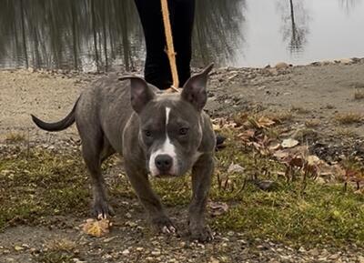 Stunning American Bully for stud. Blue/Grey with white, loads of muscle, bright amber eyes, nice ...