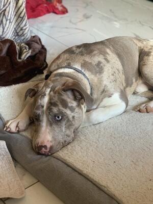 Rehoming my 4 year old merle boy. Neutered and all shots and rabies complete. Unfortunately lo...