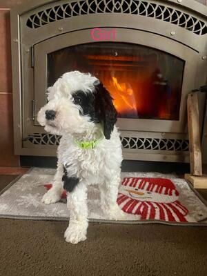 We have Sheepadoodles!! Mom is a medium size Sheepadoodle and dad is a full size Sheepadoodle! They...