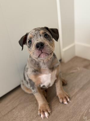 8-Week-Old Tri Merle American Pocket Bully – Male Details: 8 weeks old First set of shots & ...