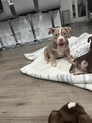 Selling our 1 1/2 months bully pups cheap cuz we need to move and dont wanna stress the pups.. pls ...