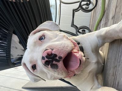 Dual registered 1.5 years American bully intact. Good with other dogs. Good with cats. Excellent wit...