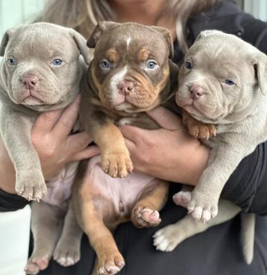 Absolutely stunning pups the chocolate tri is female and lilac tri is male. They come from prestigi...