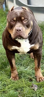 Loving American Bully! ❤️ Meet Milo🐶 This friendly 3-year-old American Bully weighs in at...