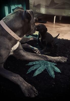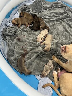 Puppy was born February 4th 2025. He is a XL mixed with a classic bully. The father is a merle and t...