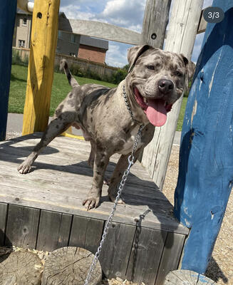 Sweet Merle American Bully Puppy Looking for Her Forever Home 🐾