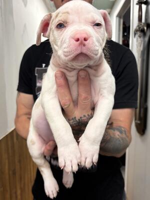 Selling one beautiful female pocket american bully. Shes 8 weeks old & ready to go! Shes deworme...