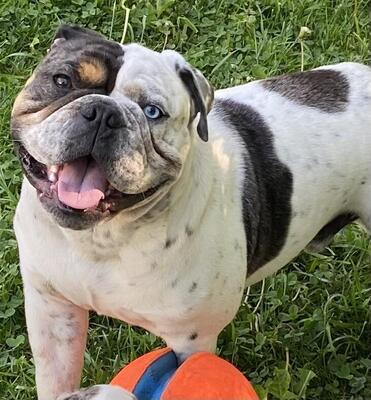Blue Merle olde English Bulldogge for stud. Has sired 5 litters in the past with 5-12 pups each. Car...