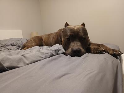Mother x 78lbs x 4yrs x Tan & White patches/paws x Retirement Litter. Father x 84lbs x 2yrs x Gra...
