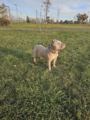 Hi Im looking to rehome my female American bully because Ive downsized from a house to an apartment ...