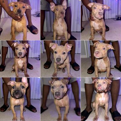 Hello he is a 11 month old puppy, blue nose , pitbull Looking for a good home...