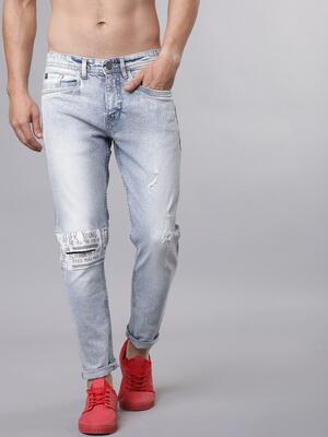 Roadster Men Blue Skinny Fit Mid-Rise Low Distressed Save Water Stretchable Jeans