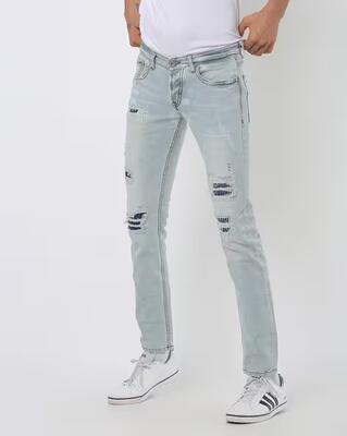 Roadster Men Blue Skinny Fit Mid-Rise Low Distressed Save Water Stretchable Jeans