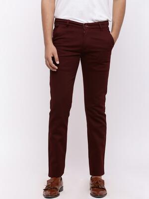Nation Polo Club Men Maroon Skinny Fit Solid Chinos