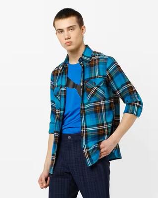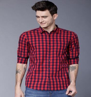 HIGHLANDER Men Red & Navy Blue Slim Fit Checked Casual Shirt