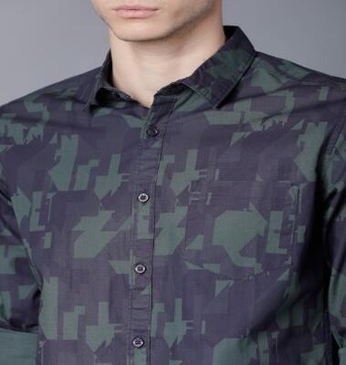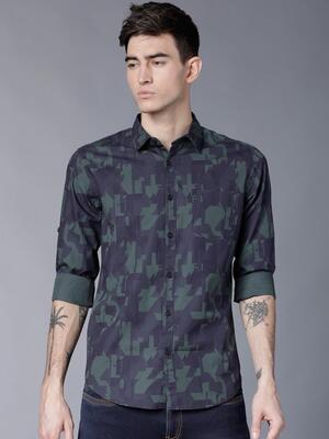 HIGHLANDER Men Navy Blue & Olive Green Slim Fit Printed Casual Shirt