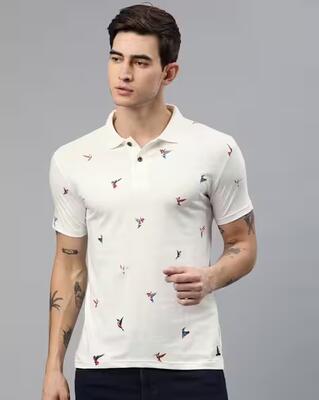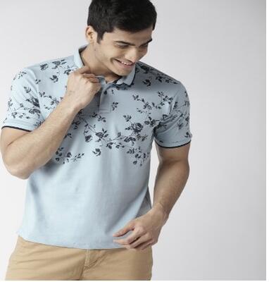 Mast & Harbour Men Blue Printed Polo Collar T-shirt