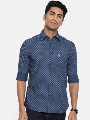 U.S. Polo Assn. Men Blue Tailored Fit Printed Casual Shirt