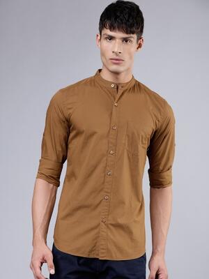 HIGHLANDER Men Khaki Brown Slim Fit Solid Casual Shirt