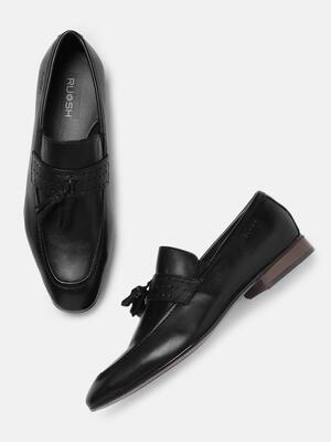 Ruosh Men Black Tassel Detail Battia Leather Slip-On Shoes