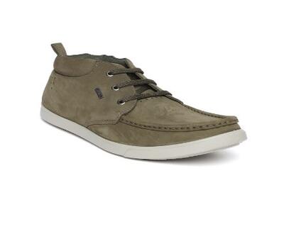 Product Highlights Product Code: 6995119 A pair of round-toe olive green sneakers, has mid-top...