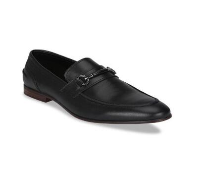 Ruosh Men Black Tassel Detail Battia Leather Slip-On Shoes