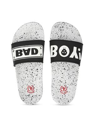 Product Code: 12178482 A pair of white and black self design sliders Rubber upper material ...