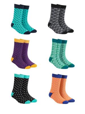 Dynamocks Unisex Pack of 6 Multicoloured Patterned Calf-Length Socks