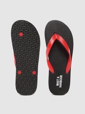 Mast & Harbour Men Red & Black Solid Thong Flip-Flops