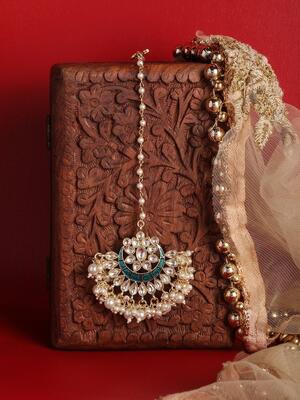 AccessHer Women Gold-Plated & White Kundan Maang Tika