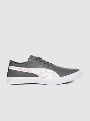 Product Code: 10253247 A pair of round-toe grey sneakers, has print detail on the sides, has regu...