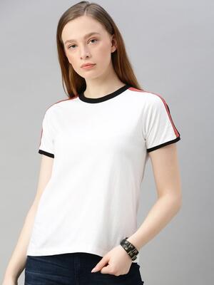 Roadster Women White Solid Round Neck T-shirt