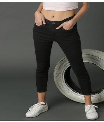 Roadster Women Black Skinny Fit Mid-Rise Clean Look Stretchable Cropped Jeans