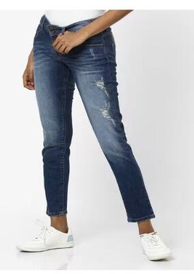 ONLY Women Blue Carmen Regular Skinny Fit Mid-Rise Low Distress Stretchable Jeans