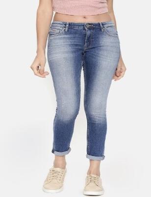Roadster Women Blue Skinny Fit Mid-Rise Clean Look Stretchable Cropped Jeans