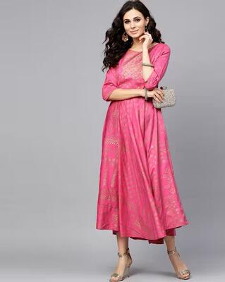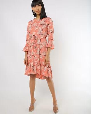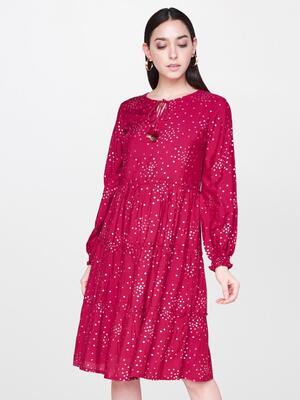 AND Women Pink Printed Fit and Flare Dress