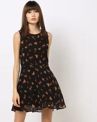 Floral Print Skater Dress with Back Cut-Out