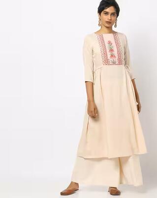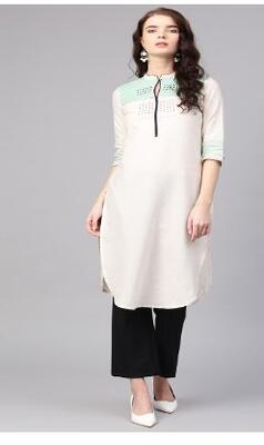 Product Code: 8429437 Off-White and turquoise blue yoke design straight kurta, has a keyhole neck...