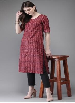 Product Code: 10297669 Red and Blue printed straight kurta, has a round neck, three-quarter sleev...