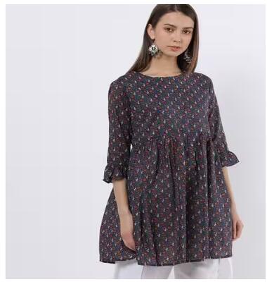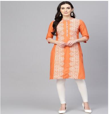 Product Code: 8429191 Orange and white printed straight kurta, has a mandarin collar, three-quart...