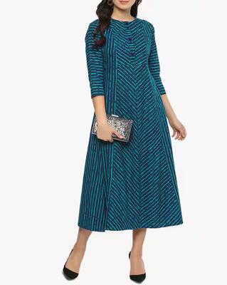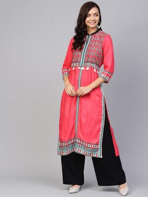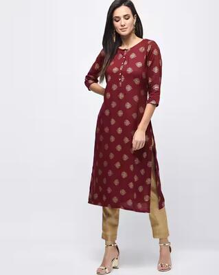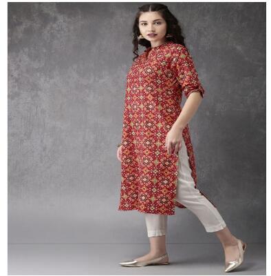 Product Code: 2323151 Red and green printed A-line kurta, has a mandarin collar, three-quarter sl...