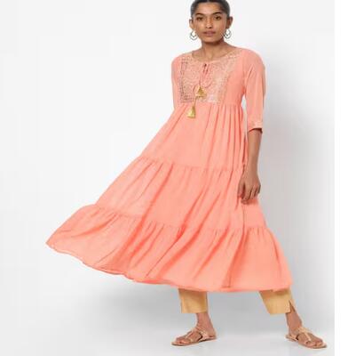 Tiered Anarkali Kurta with Tassel Tie-Up