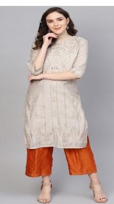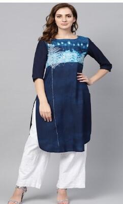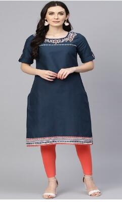 Product Code: 8429165 Navy Blue solid straight kurta , has a round neck with embroidered detail, ...