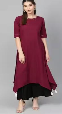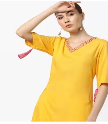 UNI 33~ Embroidery along neckline 5'6~ Cotton Blend XS No Darts Machine wash MRP Rs. 1,799....