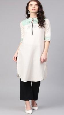 Product Code: 8429437 Off-White and turquoise blue yoke design straight kurta, has a keyhole neck...
