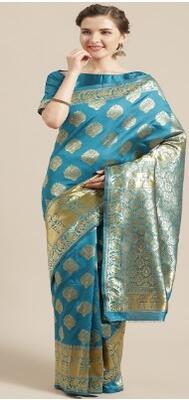 Saree mall Blue & Golden Woven Design Banarasi Saree